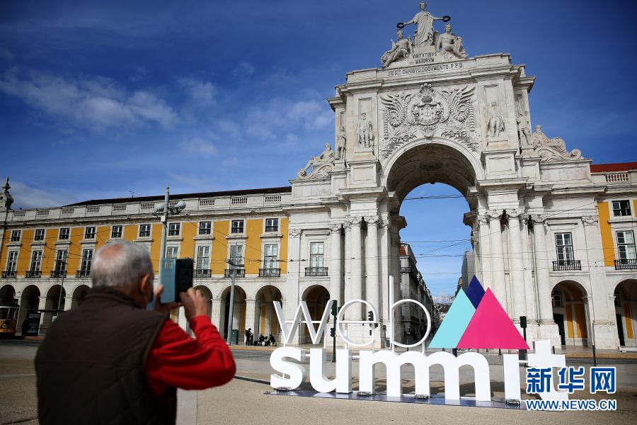 11月30日,在葡萄牙里斯本,一名男子用手機拍攝2020年網(wǎng)絡(luò)峰會的立體標(biāo)識。