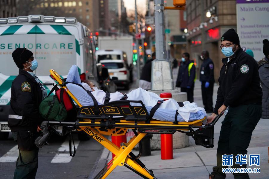 12月8日,醫(yī)護人員在美國紐約一家醫(yī)院外運送病人。美國約翰斯·霍普金斯大學8日發(fā)布的新冠疫情最新統(tǒng)計數(shù)據顯示,美國累計確診病例超過1500萬例。新華社記者 王迎 攝