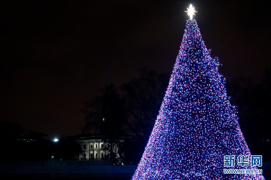 這是12月24日在美國華盛頓拍攝的白宮和國家圣誕樹。
