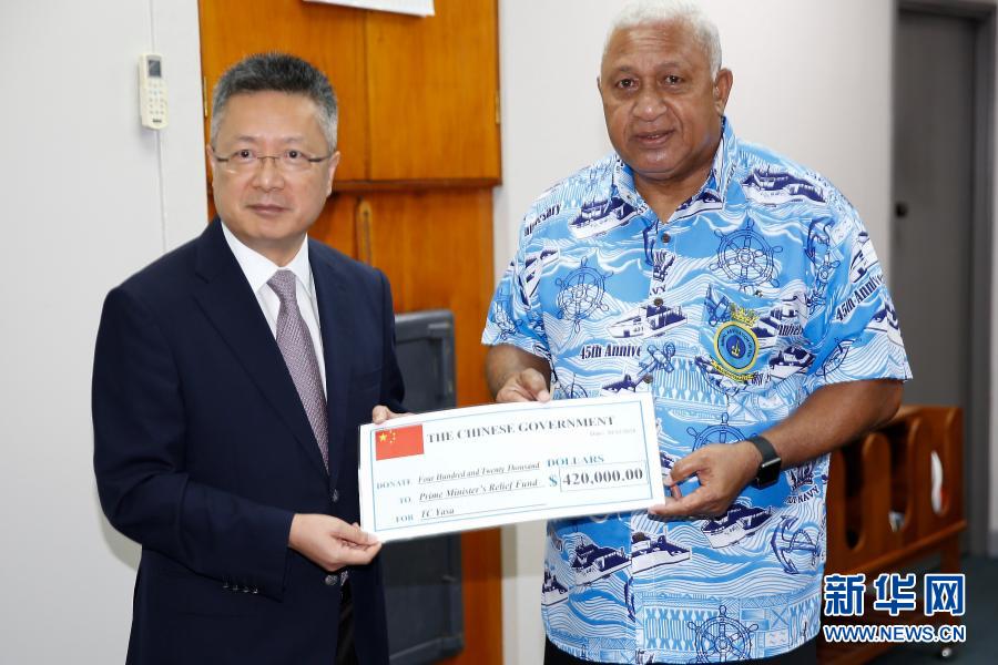 當(dāng)天在斐濟(jì)總理辦公室舉行的儀式上,中國(guó)駐斐濟(jì)大使錢波代表中國(guó)政府向斐濟(jì)總理姆拜尼馬拉馬轉(zhuǎn)交了這筆援助款。