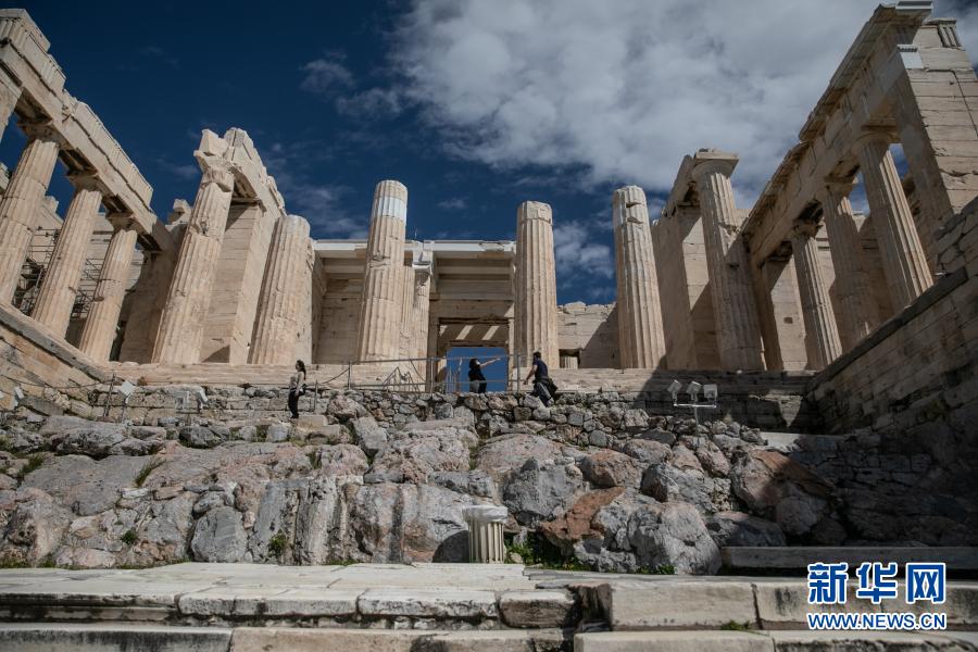 3月22日,游客游覽希臘雅典衛(wèi)城。希臘露天考古遺跡22日起恢復(fù)開(kāi)放。游客需遵守保持社交距離和佩戴口罩等防疫規(guī)定。新華社發(fā)(萊夫特里斯·帕察里斯攝)