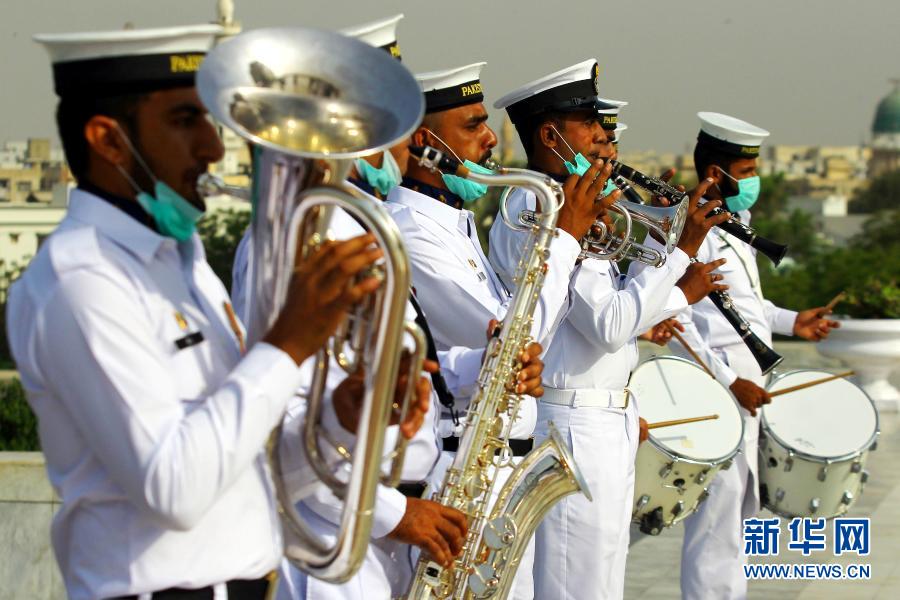 3月23日,樂手在位于巴基斯坦卡拉奇的國(guó)父真納墓參加“巴基斯坦日”紀(jì)念活動(dòng)。