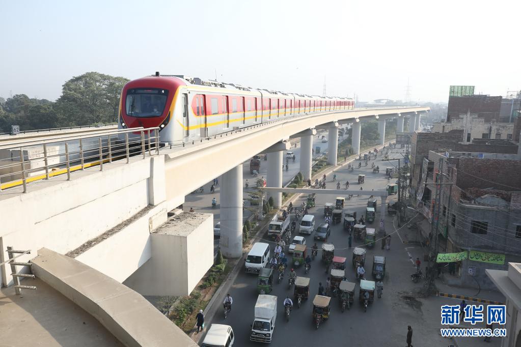 在巴基斯坦拉合爾市,一輛橙線地鐵列車準(zhǔn)備進站(2020年10月26日攝)。當(dāng)日,巴基斯坦首條地鐵——拉合爾橙線迎來首批乘客,標(biāo)志著巴基斯坦步入“地鐵時代”。新華社記者劉天攝