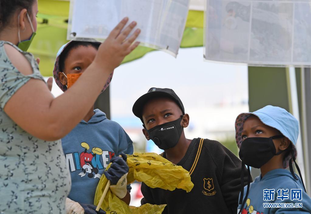4月22日,南非比勒陀利亞的志愿者向小朋友們介紹環(huán)保知識。