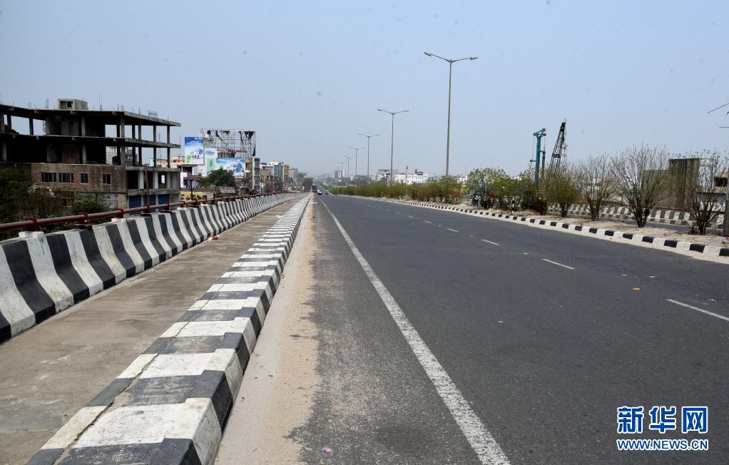 這是5月5日在印度巴特那拍攝的實(shí)施部分封鎖措施下的道路。