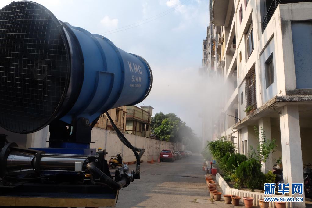 5月6日,在印度加爾各答,市政人員進(jìn)行消殺工作。