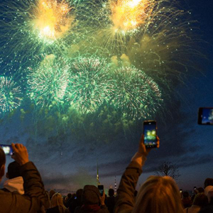 5月9日,人們在俄羅斯圣彼得堡觀看煙花。