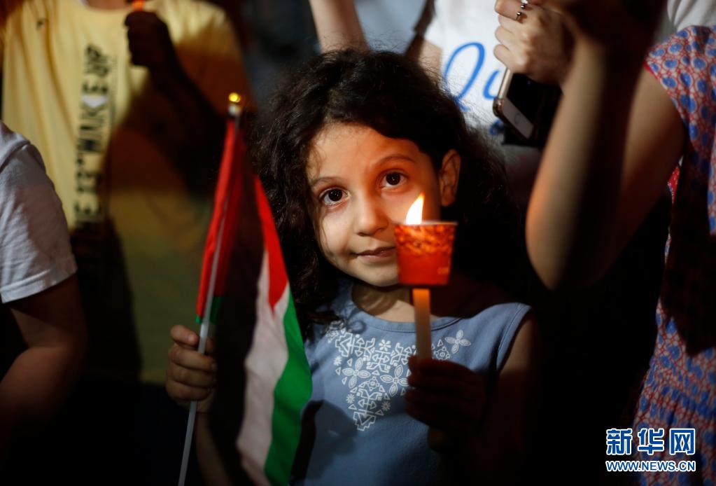 5月20日,一名兒童在約旦河西岸城市納布盧斯參加聲援活動(dòng)。