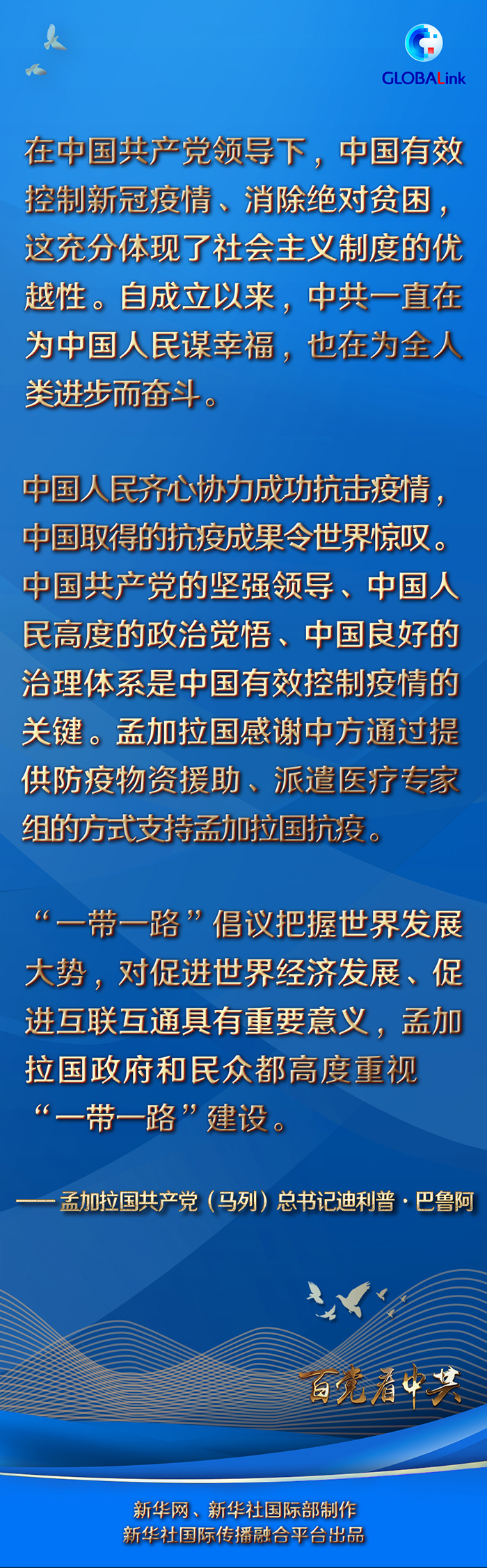 新華社達(dá)卡6月14日電 孟加拉國(guó)共產(chǎn)黨(馬列)總書記迪利普·巴魯阿日前在達(dá)卡接受新華社記者專訪時(shí)說,在中國(guó)共產(chǎn)黨領(lǐng)導(dǎo)下,中國(guó)有效控制新冠疫情、消除絕對(duì)貧困,這充分體現(xiàn)了社會(huì)主義制度的優(yōu)越性。自成立以來,中共一直在為中國(guó)人民謀幸福,也在為全人類進(jìn)步而奮斗。