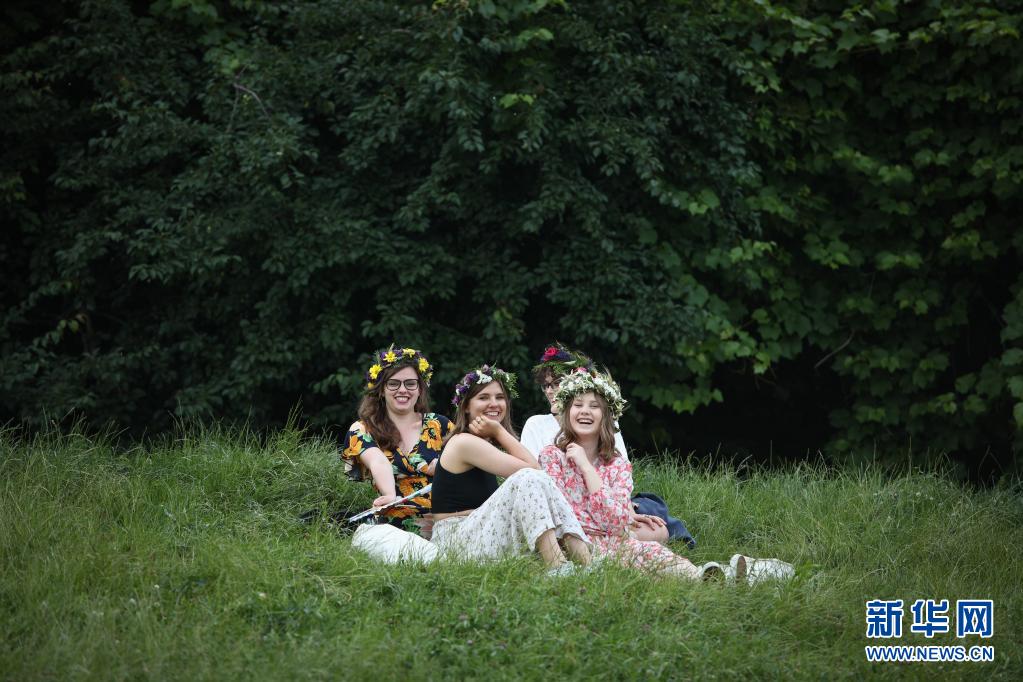 6月26日,女孩們佩戴花冠在波蘭首都華沙參加夏日文化娛樂(lè)活動(dòng)。