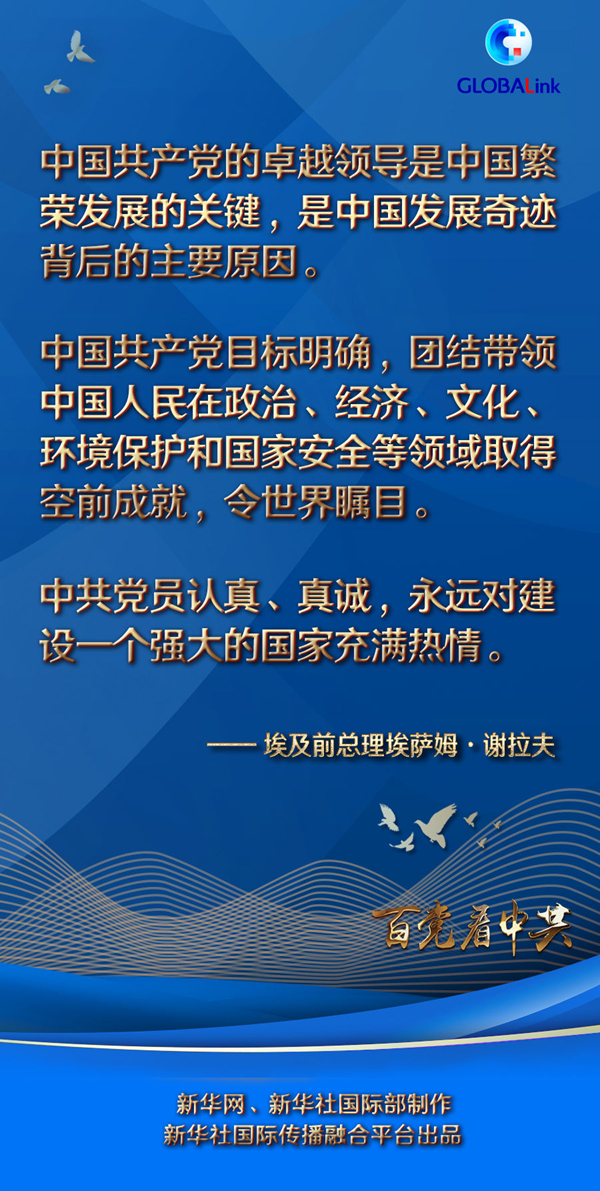 新華社開羅7月2日電 埃及前總理埃薩姆·謝拉夫日前在開羅通過視頻方式接受新華社記者專訪時(shí)表示,中國共產(chǎn)黨的卓越領(lǐng)導(dǎo)是中國繁榮發(fā)展的關(guān)鍵,是“中國發(fā)展奇跡背后的主要原因”。