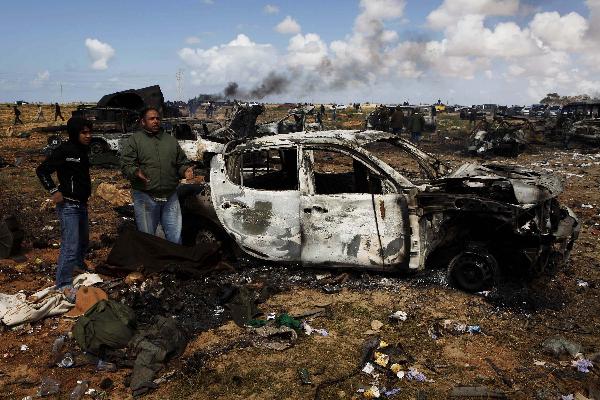 法國戰(zhàn)機(jī)摧毀數(shù)輛卡扎菲軍隊(duì)裝甲車