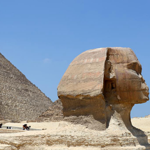 4月26日,游客在位于埃及吉薩省的金字塔群景區(qū)內(nèi)游玩。