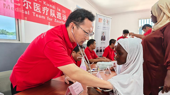 中國(guó)援桑給巴爾醫(yī)療隊(duì)在當(dāng)?shù)毓聝涸洪_(kāi)展義診活動(dòng)