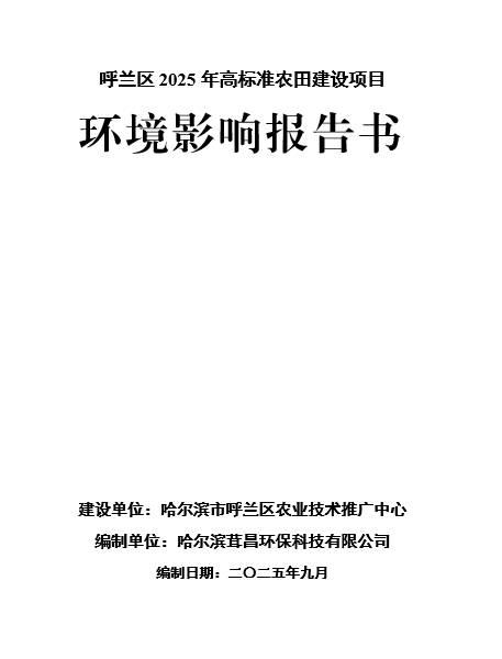 呼蘭區(qū)2025年高標準農田建設項目環(huán)境影響報告書及公眾參與說明