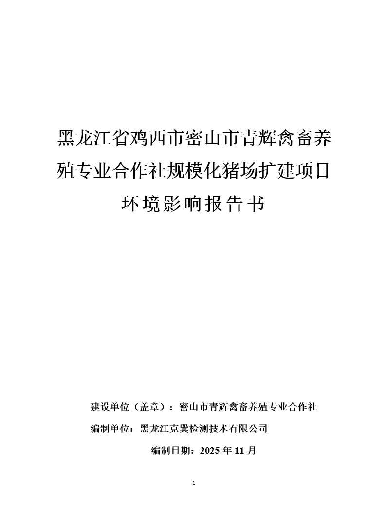 黑龍江省雞西市密山市青輝禽畜養(yǎng)殖專業(yè)合作社規(guī)模化豬場(chǎng)擴(kuò)建項(xiàng)目環(huán)境影響報(bào)告書.docx